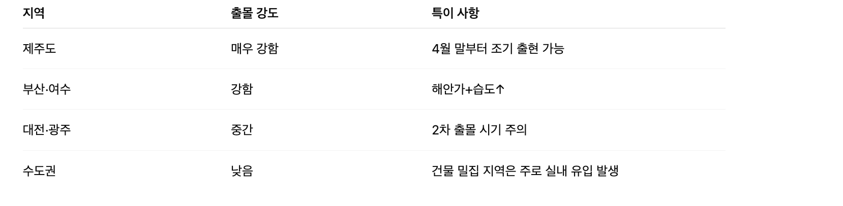 지역별 출몰 경향은 이렇게 달라요