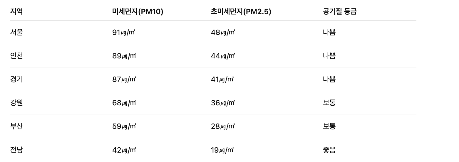 요즘엔 날씨보다 더 중요한 게 공기인 것 같아요. 햇빛이 쨍한 날에도 공기가 뿌연 날은 외출이 두려워지거든요. 그래서 저는 매일 아침 오늘 미세먼지농도부터 확인해요.