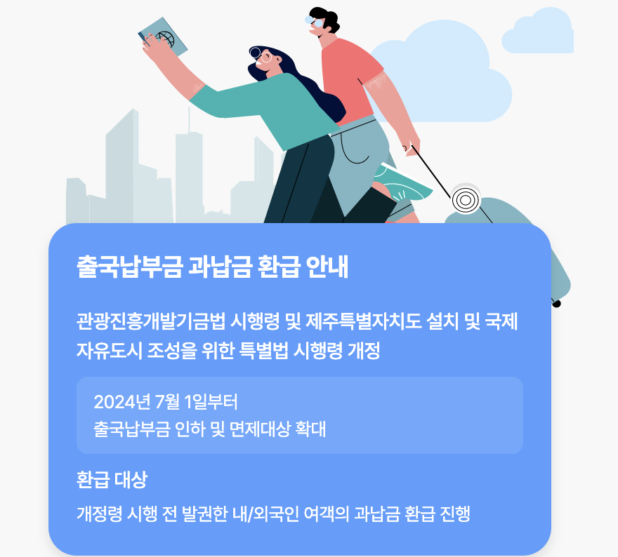 → 관광진흥개발기금으로 활용되는 항공권 부과금인데, 이번에 제도 개편으로 일부 인하/면제되어 과납분을 돌려주는 거예요.