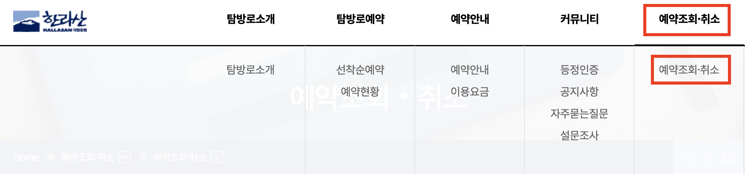 3. 한라산 탐방로예약 취소 방법
